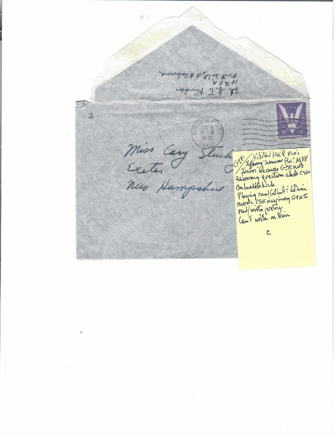 RECIPIENT: Ann Cary Stuckey Kinder (CSK) RECIPIENT LOCATION: Gilman House, Phillips Exeter Academy (PEA), Exeter, NH